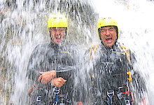 Beim Canyoning folgst du dem Lauf des Wassers durch tief eingeschnittene Schluchten, vorbei an glattpolierten Felswänden dringst Du immer weiter in unbekanntes Neuland vor. Du springst in tiefe Gumpen, rutscht über vom Wasser geformte Felsrutschen in große Becken, seilst Dich an Wasserfällen hinunter und das alles an einem Ort wo kaum ein Mensch zuvor gewesen ist. ACHTUNG SUCHTGEFAHR!