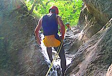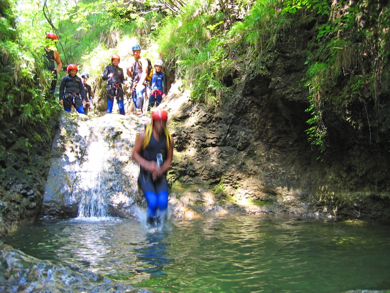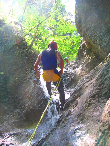Nach einem kurzen Zustieg auf einem Wanderweg gelangen wir zur Einstiegstelle in den kleinen aber feinen Canyon. Einige schnelle Rutschen, ein kleiner Sprung, drei kurze Abseilstellen und viele ausgewaschene Felsbecken sorgen für reichlich Abwechslung. Diese Schlucht ist für jeden leicht zu bewältigen und gibt einen schönen Einblick in die Vielfalt des Canyoning.