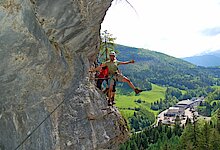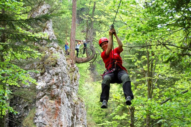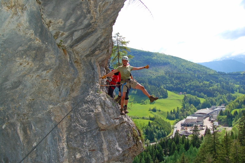 Der Abenteuerklettersteig Hexenkessel ist direkt in einen Canyon gebaut worden. Bis zu 100m über den Wasserfällen des Höllgrabens befinden sich 7 Flying Fox mit Längen bis 180m, auf denen man von einer Seite zur anderen rast. Dazwischen sind Klettersteigelemente durch Felsspalten, ein Pendler, eine Slackline und 2 Querungen auf denen nur auf einem dünnen Stahlseil balanciert wird.