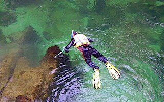 Name: Fluss: Bundesland: Schwierigkeit: Wasserfarbe: Streckenlänge: Durchflussmenge: Dauer: Voraussetzungen: Mindestalter: Termine: | Scuben Steyrdurchbruch Steyr Oberösterreich WW 1 (leicht) Kristallklar - Smaragdgrün 1,8km 15.000 Liter pro Sekunde ca. 3-4 Stunden Schwimmkenntnisse 14 Jahre täglich vom 1.Juli - 30.Oktober |