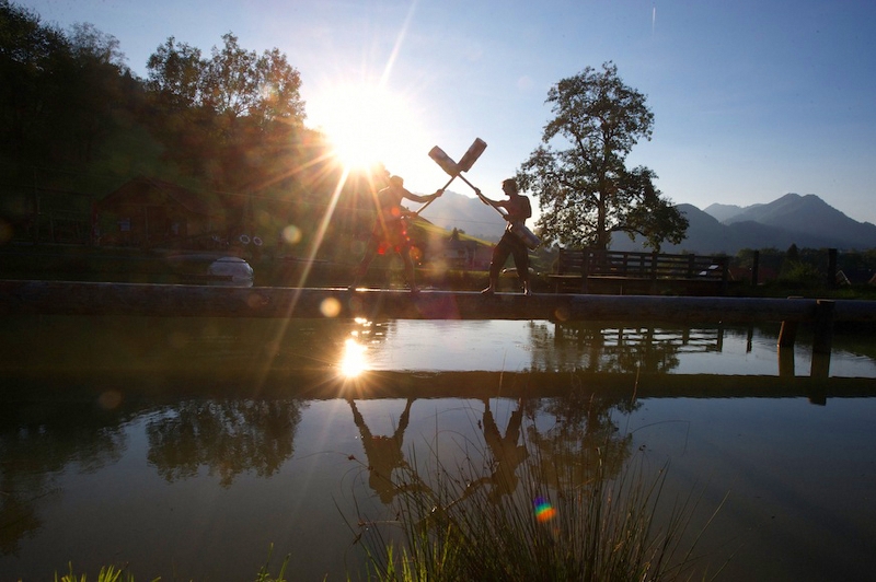 Der Bewerb wird im KO Modus ausgetragen- der Sieger kommt wieder eine Runde weiter – gekämpft wird auf einem Baumstamm mit einem mit Stroh gefülltem Jutesack oder einem überdimensionalem Wattestäbchen – a richtige Hetz´ für Teilnehmer und Zuschauer – zur Stimulierung der Lachmuskeln…