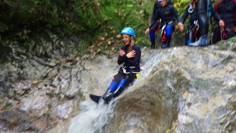 Nach einem kurzen Zustieg auf einer Forststraße gelangen wir zur Einstiegstelle in unseren Canyon. Einige kleine Rutschen, fünf kurze Abseilstellen und viele ausgewaschene Felsbecken sorgen für reichlich Abwechslung. Diese Schlucht ist für jeden leicht zu bewältigen und gibt einen schönen Einblick in eine unberührte Natur, die selten jemand zu Gesicht bekommt.