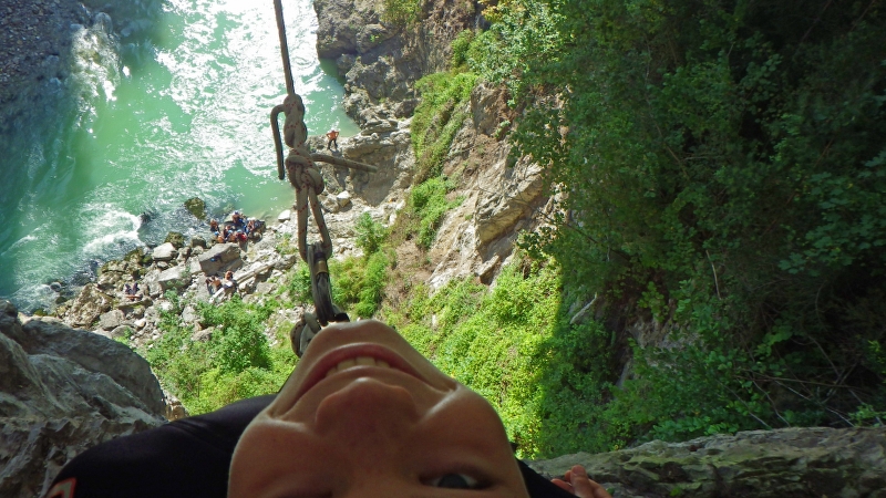 Name: Bundesland: Dauer: Voraussetzungen: . Mindestalter: Begehungszeit: | Schluchting + Big Swing ca. 5-6 Stunden keine Höhenangst |